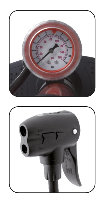 Τρόμπα δαπέδου με μανόμετρο και λαβή από καουτσούκ. Σιδερένια και στιβαρή κατασκευή συμβατή με όλες τις βαλβίδες.
